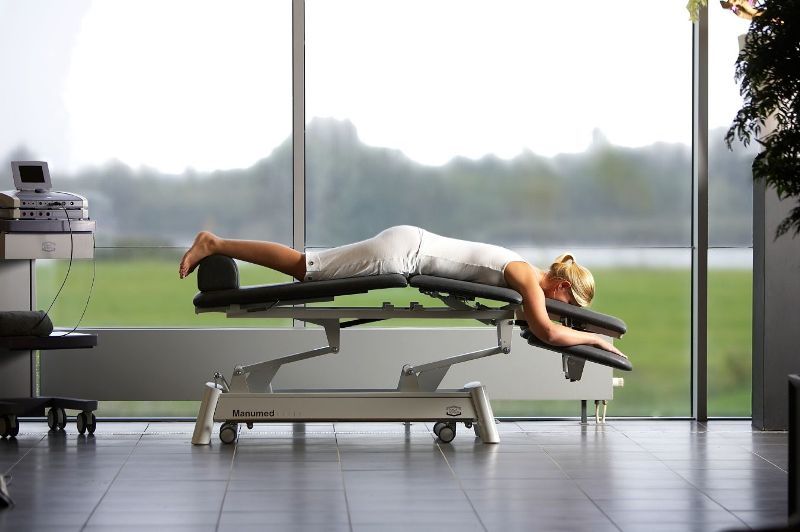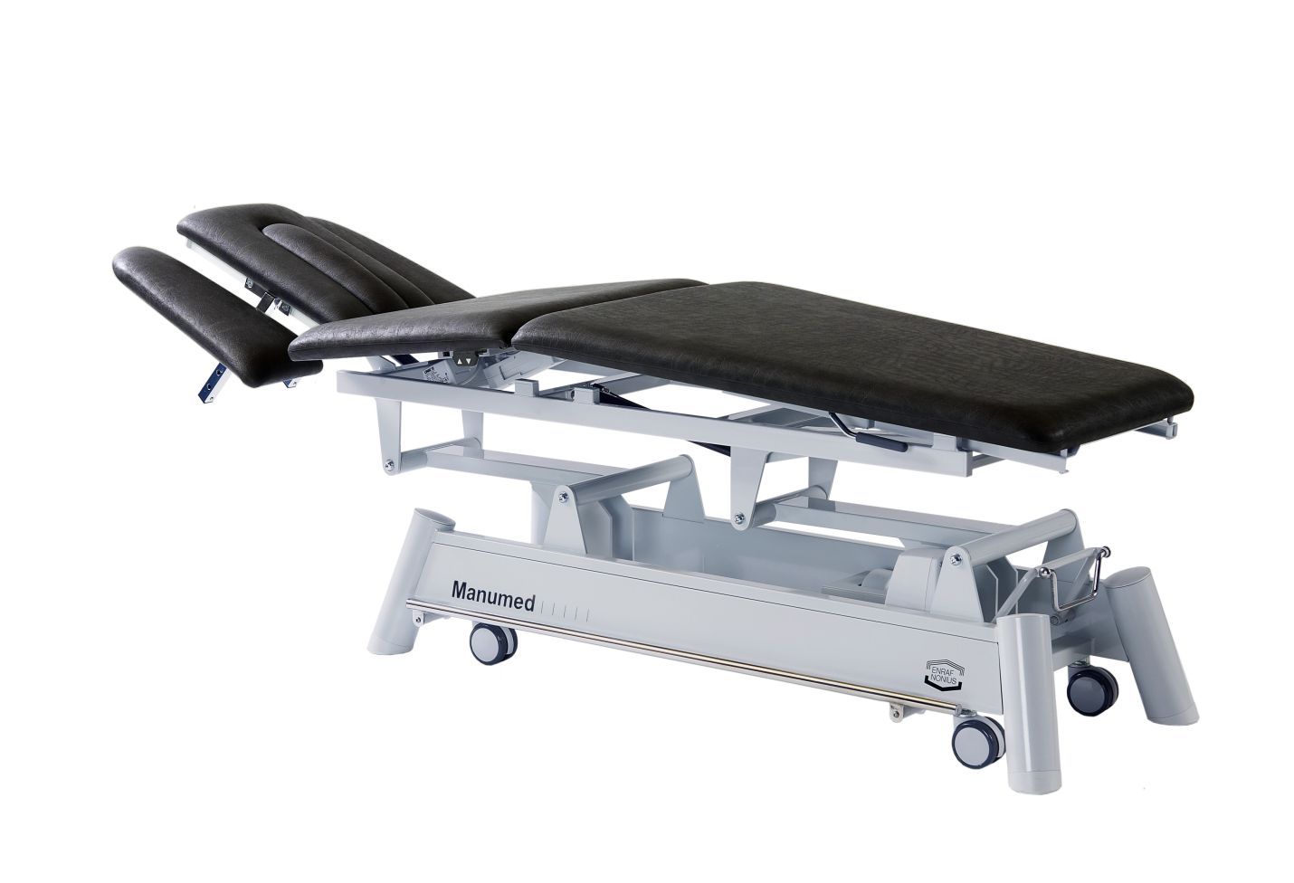 Manumed Optimal 3 secţiuni cu acţionare hidraulică, secţiunea pentru braţe reglabilă şi cu poziţie pentru flexie (telescopică) este un pat de tratament şi masaj, care permite un tratament confortabil atât pentru pacient, cât şi pentru terapeut.