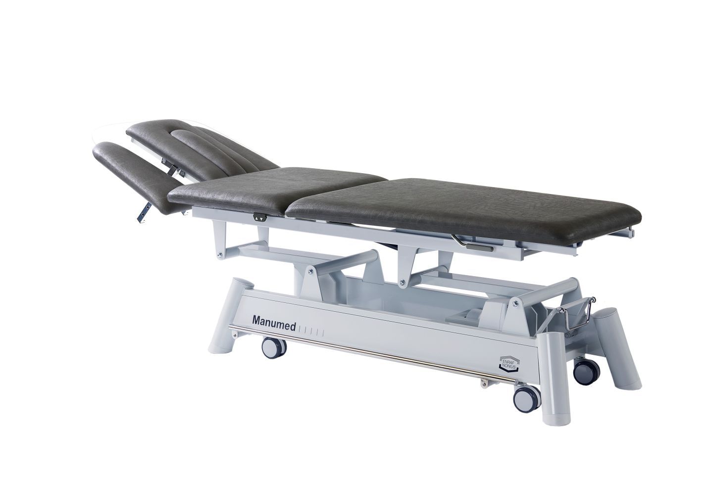 Manumed Optimal 3 secţiuni cu acţionare electrică şi secţiunea pentru braţe reglabilă, cu opţiune all-around operation este un pat de tratament şi masaj, care permite un tratament confortabil atât pentru pacient, cât şi pentru terapeut.