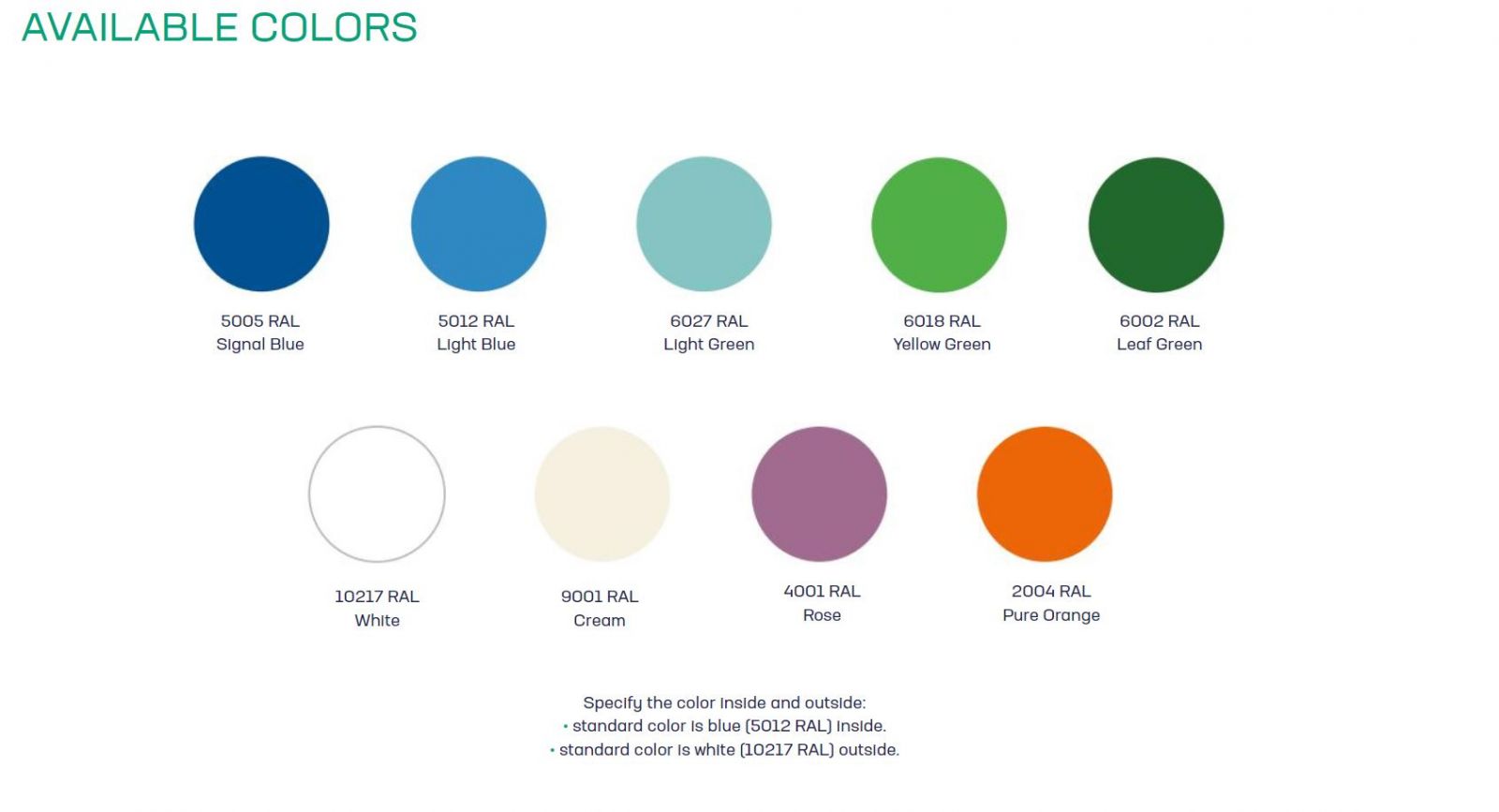 - culori la alegere din paleta RAL